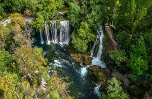 Düden Şelalesi, Türkiye’nin en etkileyici doğa manzaralarından biridir . Adını, kuzeyden gelip Antalya yakınlarında Akdeniz’e dökülen yaklaşık 30 kilometre uzunluğundaki nehirden alıyor. Ağızda, Antalya’nın heybetli kayalıkları boyunca 40 metre boyunca Türk Rivierası’na dökülen aşağı Düden şelalesi vardır . İl merkezinin yaklaşık 15 kilometre kuzeyinde tabiat parkı kapsamında yer alan Yukarı Düden şelalesi başlı başına görülmeye değer. Şehirden birkaç dakikada ormanın içinde olabilir, özellikle yaz aylarında güneşten korunarak su kenarında dinlenebilirsiniz. Fırsatınız varsa, rehberli bir tur düşününşelalelere gidin ve arkasındaki mağaraları ziyaret edin . Turlar genellikle tatil köyleri tarafından sunulmaktadır.
